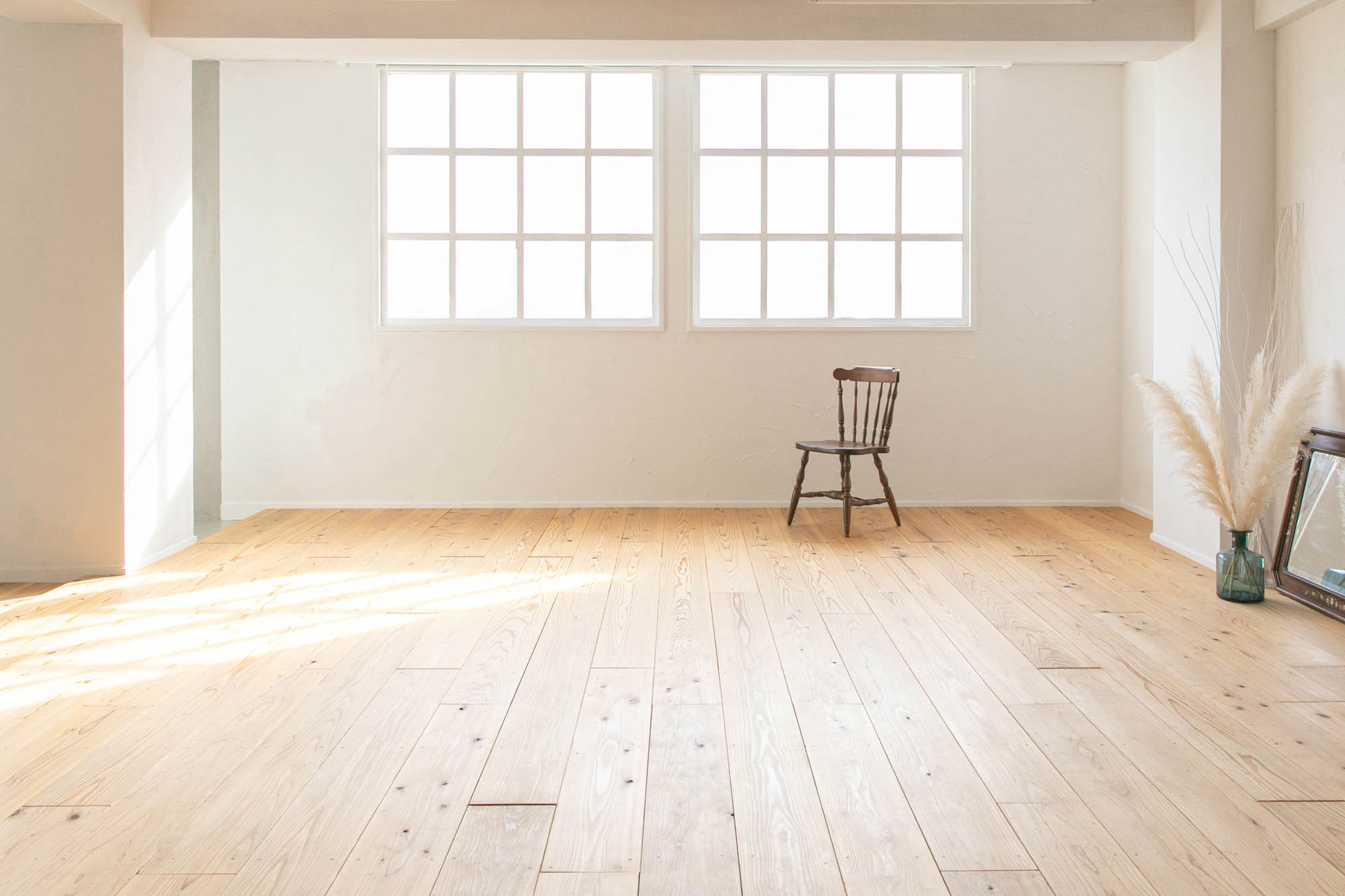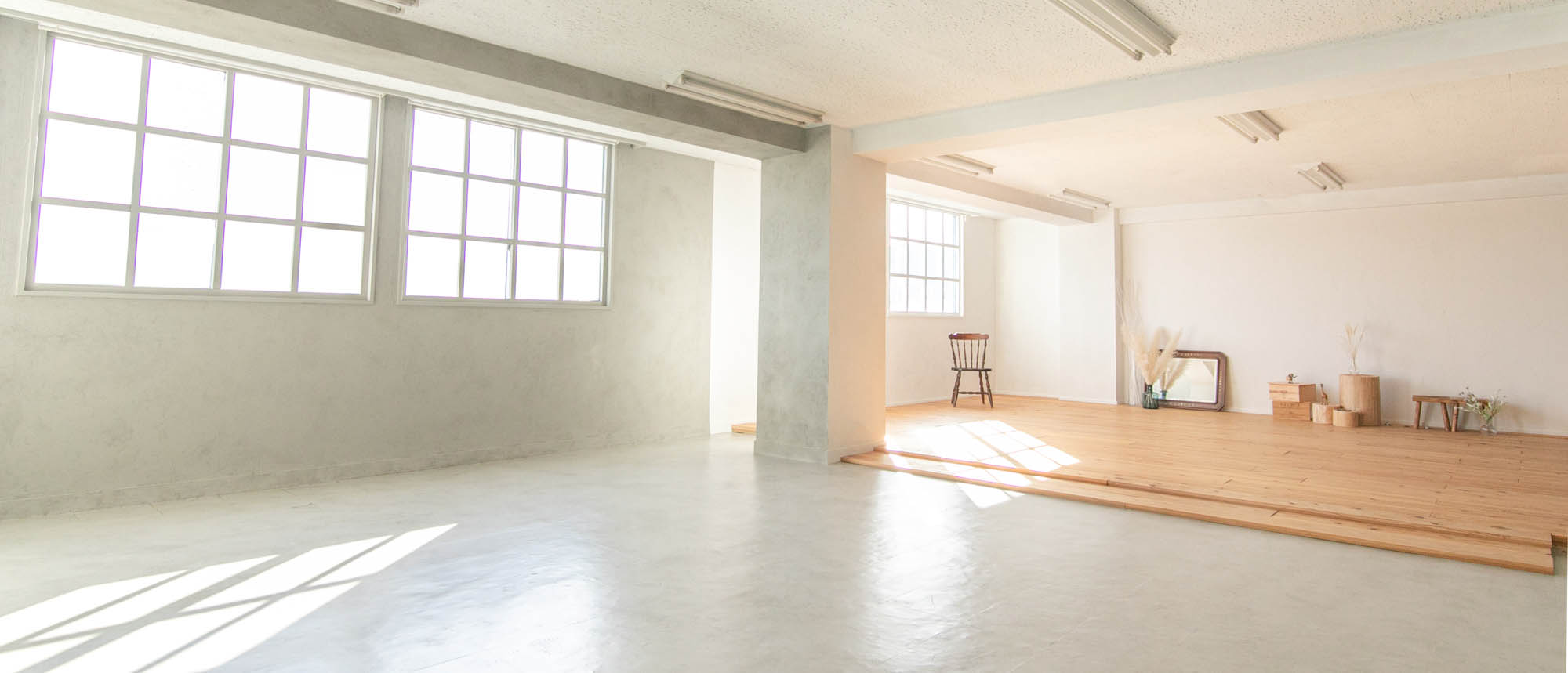 約90m2の撮影スペースでは、数パターンのナチュラルな背景で撮影が可能です